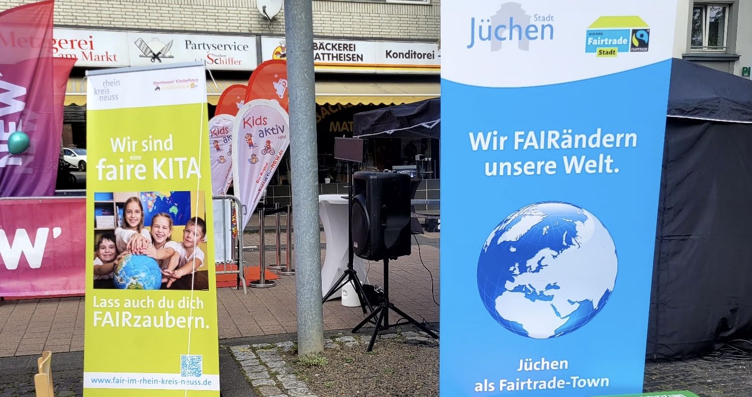 Seit 2024 sind wir in der Stadt Jüchen die erste Kindertagesstätte, die sich zur "Fairen Kita" zertifiziert hat. Uns ist es wichtig sowohl schon den jüngsten Kindern, als auch unseren Familien ein Bewusstsein für unsere Umwelt zu schaffen und über den Tellerrand hinaus zu blicken. Wir benutzen in unserem Kinderhaus und Familienzentrum Fairtrade Kaffee, Fairtrade Tee, Fairtrade Säfte, Obst, Müslis und Süßigkeiten. Hierbei achten wir insbesondere auch auf regionale Produkte.